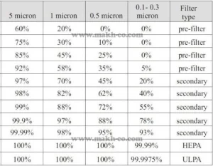 For example, a G3 pre-filter can remove 85% of particles up to 5 microns and 45% of particles up to 1 micron. An F9 bag filter can remove 99.99% of particles up to 5 microns and 98% of particles up to 1 micron.