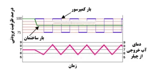 **Diagram of Water Temperature Fluctuation from a Chiller Equipped with Four Fixed-Speed Scroll or Piston Compressors:**